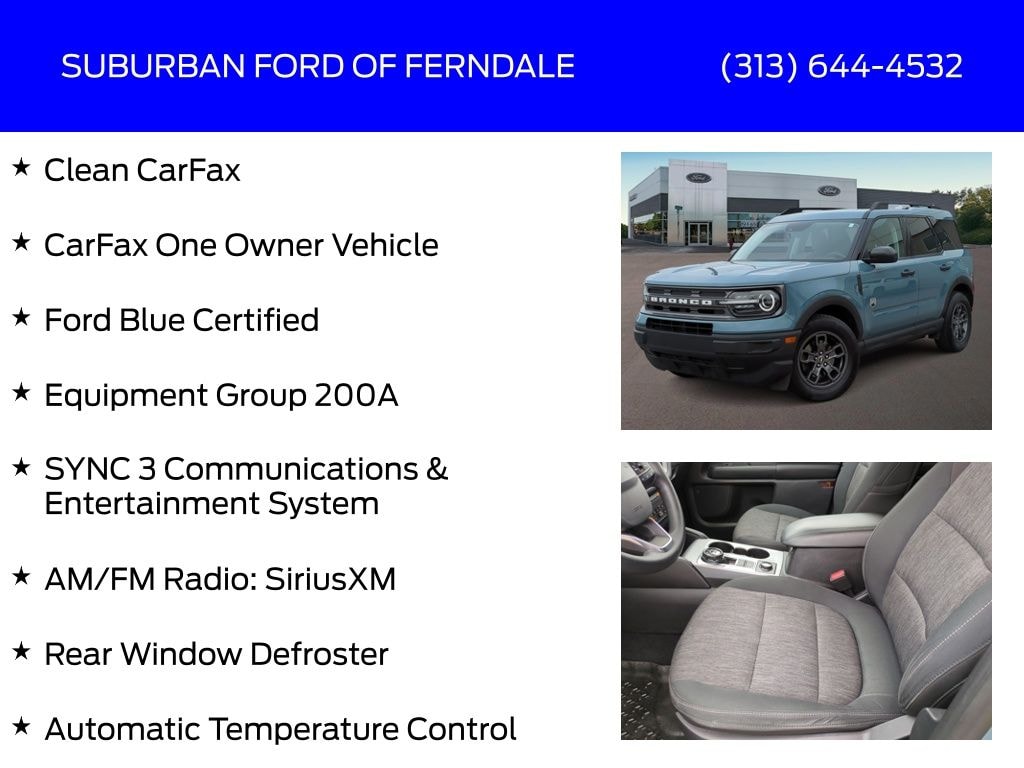 Area 51 2022 Ford Bronco Sport Big Bend 4WD 8-Speed Automatic 1.5L EcoBoost Clean CarFax, CarFax One Owner Vehicle, Ford Blue Certified, AM/FM Radio: SiriusXM, Automatic Temperature Control, Equipment Group 200A, Four Wheel Independent Suspension, Fully Automatic Headlights, Heated External Mirrors, Power Door Mirrors, Rear Window Defroster, Remote Keyless Entry, SYNC 3 Communications & Entertainment System.
