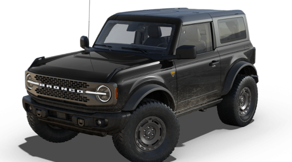 Bronco Badlands is nicely equipped with Equipment Group 332A Mid Package (2-Door Intelligent Access w/Lock/Unlock, Ambient Footwell Lighting, Connected Navigation, Dr & Pass Illuminated Sliding Visor Vanity Mirrors, Dual Smart Charging USB Ports, Dual-Zone Electronic Automatic Temperature Control, Front Row Heated Seats, Power Outlet - Back Side of Center Floor Console, and Rear Parking Sensors), Sasquatch Package (High Clearance Fender Flares, High Clearance Suspension, Position-Sensitive Bilstein Shock Absorbers, and Wheels: 17" Carbonized Gray Painted Aluminum), 4-Wheel Disc Brakes, 7 Speakers, ABS brakes, Air Conditioning, Alloy wheels, AM/FM radio: SiriusXM with 360L, AM/FM Stereo, Auto High-Beam Headlamps, Auto High-beam Headlights, Auto-dimming Rear-View mirror, BLIS Blind Spot Information System, Brake assist, Compass, Convertible HardTop, Convertible roof lining, Delay-off headlights, Driver door bin, Driver vanity mirror, Dual front impact airbags, Dual front side impact airbags, Electronic Stability Control, Emergency communication system: 911 Assist, Exterior Parking Camera Rear, Front & Rear Floor Liners w/o Carpet Floor Mats, Front anti-roll bar, Front Bucket Seats, Front Center Armrest, Front fog lights, Front reading lights, Front wheel independent suspension, Fully automatic headlights, Glass rear window, Heated door mirrors, Heated steering wheel, Illuminated entry, Integrated roll-over protection, Lane-Keeping System, Leather Shift Knob, Low tire pressure warning, Marine Grade Vinyl Heated Bucket Seats, Occupant sensing airbag, Outside temperature display, Overhead airbag, Overhead console, Panic alarm, Passenger door bin, Passenger vanity mirror, Power door mirrors, Power steering, Power windows, Pre-Collision Assist w/Automatic Emergency Braking, Radio data system, Rear window defroster, Rear window wiper, Rear-View Camera, Remote keyless entry, Security system, SiriusXM w/360L, Speed control, Split folding rear seat, Steering wheel mounted audio controls, SYNC 4, Tachometer, Telescoping steering wheel, Tilt steering wheel, Traction control, Trip computer, Variably intermittent wipers, Voltmeter, and Wheels: 17" Carbonized Gray-Painted Aluminum. See dealer for details. Price may include Ford Employee discount. Price does not include licensing costs, registration fees, taxes and dealer doc fee of $280, which are to be paid by the consumer.$1000 - Retail Bonus Cash. Exp. 01/05/2026 $750 - 2024 College Student Recognition Exclusive Cash Reward Pgm. Exp. 01/05/2026