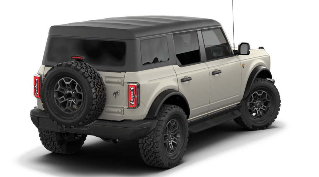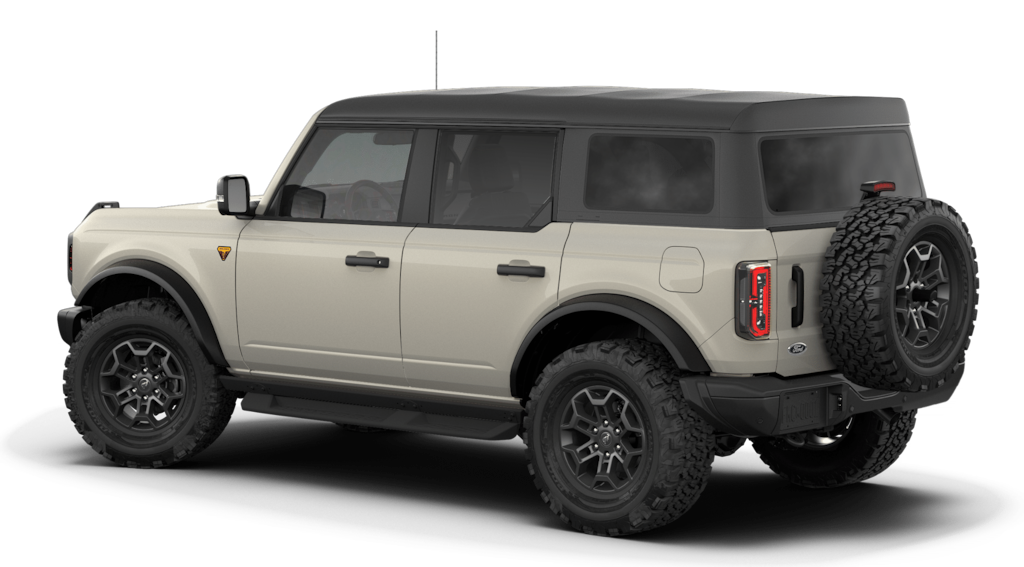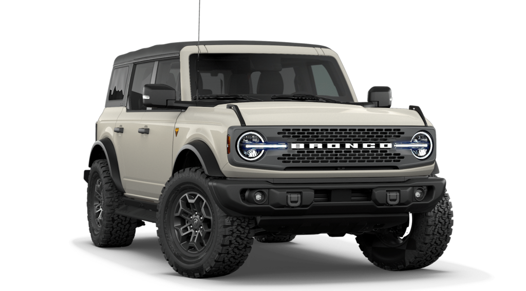 Bronco Badlands is nicely equipped with Equipment Group 334A Lux Package (2-Door Intelligent Access with Lock/Unlock, 360-Degree Camera, Adaptive Cruise Control, Ambient Footwell Lighting, Connected Navigation, Driver and Front Passenger Illuminated Sliding Visor Vanity Mirrors, Dual Smart Charging USB Ports, Dual-Zone Electronic Automatic Temperature Control, Evasive Steering Assist, Front Parking Sensors, Front Row Heated Seats, Heated Steering Wheel, Information on Demand Panel, Marine Grade Vinyl Heated Bucket Seats, Pro Power Onboard - 400W, Rear Parking Sensors, Sideview Mirrors, and Wheels: 17" Carbonized Gray-Painted Aluminum), Ford Connectivity Package (1-Year Included), 4-Wheel Disc Brakes, 4.7 Axle Ratio, 7 Speakers, ABS brakes, Air Conditioning, Alloy wheels, AM/FM radio: SiriusXM with 360L, AM/FM Stereo, Auto High-Beam Headlamps, Auto High-beam Headlights, Auto-dimming Rear-View mirror, BLIS Blind Spot Information System, Brake assist, Carbonized Gray Molded-in-Color Hard Top, Compass, Delay-off headlights, Driver door bin, Driver vanity mirror, Dual front impact airbags, Dual front side impact airbags, Electronic Stability Control, Emergency communication system: 911 Assist, Exterior Parking Camera Rear, Front anti-roll bar, Front Bucket Seats, Front Center Armrest, Front fog lights, Front reading lights, Front Row Top Panels and Door Storage Bags, Front wheel independent suspension, Fully automatic headlights, Hard Top Sound Deadening Headliner, Heated door mirrors, Heated front seats, Illuminated entry, Integrated roll-over protection, Lane-Keeping System, Leather Shift Knob, Low tire pressure warning, Occupant sensing airbag, Outside temperature display, Overhead airbag, Overhead console, Panic alarm, Passenger door bin, Passenger vanity mirror, Power door mirrors, Power steering, Power windows, Pre-Collision Assist with Automatic Emergency Braking, Radio data system, Raptor-Style Running Board, Rear-View Camera, Rear-Window Defroster and Washer, Remote keyless entry, Security system, SiriusXM with 360L, Speed control, Split folding rear seat, Steering wheel mounted audio controls, SYNC 4, Tachometer, Telescoping steering wheel, Tilt steering wheel, Traction control, Trip computer, Variably intermittent wipers, and Voltmeter.