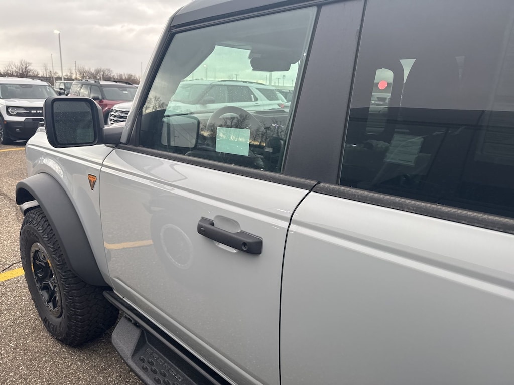 Bronco Badlands is nicely equipped with Black Appearance Package (Black Molded-in-Color Door Handles, Black Molded-in-Color Sideview Mirror Caps, and Black-Painted Molded-in-Color Grille), Equipment Group 334A Lux Package (2-Door Intelligent Access with Lock/Unlock, 360-Degree Camera, Adaptive Cruise Control, Ambient Footwell Lighting, Connected Navigation, Driver and Front Passenger Illuminated Sliding Visor Vanity Mirrors, Dual Smart Charging USB Ports, Dual-Zone Electronic Automatic Temperature Control, Evasive Steering Assist, Front Parking Sensors, Front Row Heated Seats, Heated Steering Wheel, Information on Demand Panel, Marine Grade Vinyl Heated Bucket Seats, Pro Power Onboard - 400W, Rear Parking Sensors, Sideview Mirrors, and Wheels: 17" Carbonized Gray-Painted Aluminum), Ford Connectivity Package (1-Year Included), Sasquatch Package (Front Stabilizer Disconnect, High Clearance Suspension, and Position-Sensitive Bilstein Shock Absorbers), 4-Wheel Disc Brakes, 7 Speakers, ABS brakes, Air Conditioning, Alloy wheels, AM/FM radio: SiriusXM with 360L, AM/FM Stereo, Auto High-Beam Headlamps, Auto High-beam Headlights, Auto-dimming Rear-View mirror, BLIS Blind Spot Information System, Brake assist, Compass, Delay-off headlights, Driver door bin, Driver vanity mirror, Dual front impact airbags, Dual front side impact airbags, Electronic Stability Control, Emergency communication system: 911 Assist, Exterior Parking Camera Rear, Front anti-roll bar, Front Bucket Seats, Front Center Armrest, Front fog lights, Front License Plate Bracket, Front reading lights, Front wheel independent suspension, Fully automatic headlights, Hard Top Sound Deadening Headliner, Heated door mirrors, Heated front seats, Illuminated entry, Integrated roll-over protection, Lane-Keeping System, Leather Shift Knob, Leather-Trimmed/Vinyl Bucket Seats, Low tire pressure warning, Occupant sensing airbag, Outside temperature display, Overhead airbag, Overhead console, Panic alarm, Passenger door bin, Passenger vanity mirror, Power door mirrors, Power steering, Power windows, Pre-Collision Assist with Automatic Emergency Braking, Radio data system, Raptor-Style Running Board, Rear-View Camera, Rear-Window Defroster and Washer, Remote keyless entry, Security system, Shadow Black Painted Hard Top, SiriusXM with 360L, Speed control, Split folding rear seat, Steering wheel mounted audio controls, SYNC 4, Tachometer, Telescoping steering wheel, Tilt steering wheel, Traction control, Trip computer, Variably intermittent wipers, Voltmeter, and Wheels: 17" Matte Black Alloy. See dealer for details. Price may include Ford Employee discount. Price does not include licensing costs, registration fees, taxes and dealer doc fee of $280, which are to be paid by the consumer.$750 - Retail Customer Cash. Exp. 04/30/2026