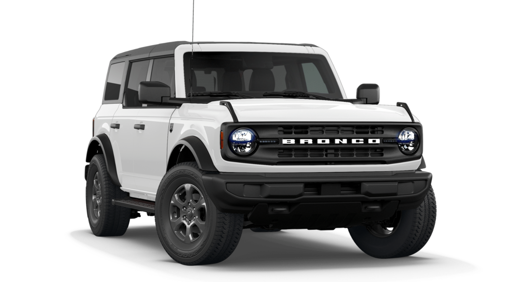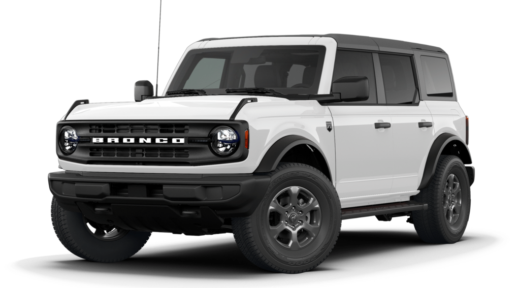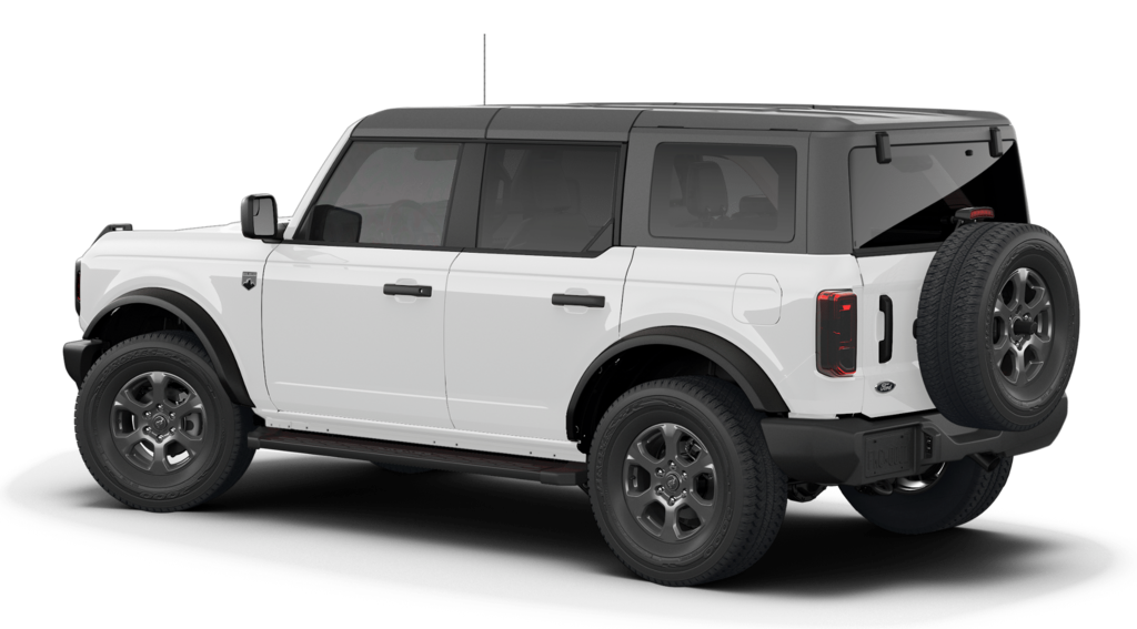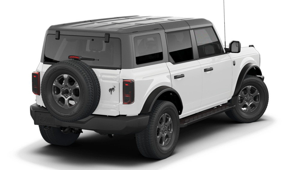 Bronco Big Bend is nicely equipped with Equipment Group 222A Mid Package (2-Door Intelligent Access with Lock/Unlock, AM/FM Stereo, Ambient Footwell Lighting, Cloth Bucket Seats, Connected Navigation, Driver and Front Passenger Illuminated Sliding Visor Vanity Mirrors, Dual Smart Charging USB Ports, Dual-Zone Electronic Automatic Temperature Control, Front Row Heated Seats, Pro Power Onboard - 400W, Rear Parking Sensors, SiriusXM with 360L, SYNC 4, and Wheels: 17" Carbonized Gray-Painted Aluminum), Ford Connectivity Package (1-Year Included), 4-Wheel Disc Brakes, 4.46 Axle Ratio, 7 Speakers, ABS brakes, Air Conditioning, Alloy wheels, AM/FM radio: SiriusXM with 360L, Auto High-Beam Headlamps, Auto High-beam Headlights, BLIS Blind Spot Information System, Brake assist, Carbonized Gray Molded-in-Color Hard Top, Compass, Delay-off headlights, Driver door bin, Driver vanity mirror, Dual front impact airbags, Dual front side impact airbags, Electronic Stability Control, Emergency communication system: 911 Assist, Exterior Parking Camera Rear, Front anti-roll bar, Front Bucket Seats, Front Center Armrest, Front reading lights, Front wheel independent suspension, Fully automatic headlights, Heated door mirrors, Illuminated entry, Integrated roll-over protection, Lane-Keeping System, Low tire pressure warning, Occupant sensing airbag, Outside temperature display, Overhead airbag, Overhead console, Panic alarm, Passenger door bin, Passenger vanity mirror, Power door mirrors, Power steering, Power windows, Pre-Collision Assist with Automatic Emergency Braking, Radio data system, Rear-View Camera, Rear-Window Defroster and Washer, Remote keyless entry, Security system, Side Step, Speed control, Split folding rear seat, Steering wheel mounted audio controls, Tachometer, Telescoping steering wheel, Tilt steering wheel, Traction control, Trip computer, and Variably intermittent wipers.