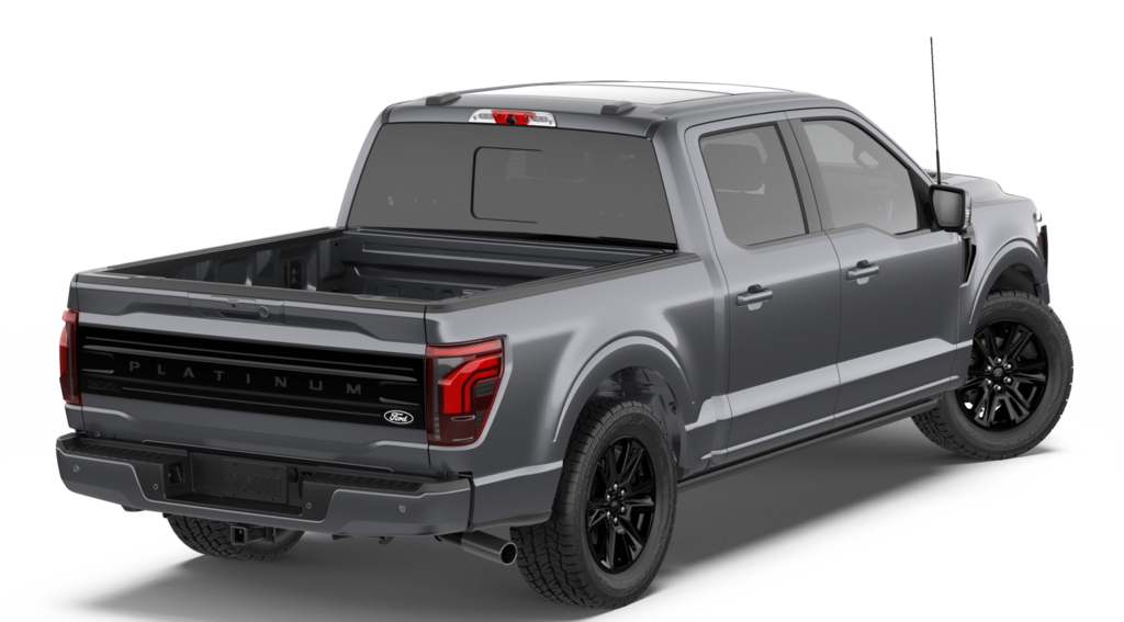 F-150 Platinum is nicely equipped with Equipment Group 702A High (Electronic Locking with 3.55 Axle Ratio, Power-Deployable Running Boards, Radio: B&O Unleashed Sound System by Bang & Olufsen, Unique Multi-Contour Leather Bucket Seats, and Wheels: 20" Painted Gloss Ebony Black), Ford Connectivity Package (1-Year Included), GVWR: 7,400 lbs Payload Package, Internet access capable: 5G Modem - Ford Connectivity Package, 4WD, 4-Wheel Disc Brakes, 8 Speakers, ABS brakes, Adjustable pedals, Air Conditioning, Alloy wheels, AM/FM radio: SiriusXM with 360L, Auto High-beam Headlights, Auto tilt-away steering wheel, Auto-dimming door mirrors, Auto-dimming Rear-View mirror, Automatic temperature control, Brake assist, Bumpers: body-color, Compass, Delay-off headlights, Driver door bin, Driver vanity mirror, Driver's Side SecuriCode Keyless-Entry Keypad, Dual front impact airbags, Dual front side impact airbags, Electronic Stability Control, Emergency communication system: SYNC 4 911 Assist, Front anti-roll bar, Front Bucket Seats, Front Center Armrest, Front dual zone A/C, Front fog lights, Front reading lights, Front wheel independent suspension, Fully automatic headlights, Garage door transmitter, Heated door mirrors, Heated front seats, Heated rear seats, Heated steering wheel, Illuminated entry, Leather steering wheel, Low tire pressure warning, Memory seat, Navigation system: Connected Navigation, Occupant sensing airbag, Outside temperature display, Overhead airbag, Overhead console, Panic alarm, Passenger door bin, Passenger vanity mirror, Pedal memory, Power door mirrors, Power driver seat, Power passenger seat, Power steering, Power windows, Radio data system, Radio: B&O Sound System by Bang and Olufsen, Rain sensing wipers, Rear reading lights, Rear seat center armrest, Rear step bumper, Rear window defroster, Remote keyless entry, Security system, Speed control, Split folding rear seat, Steering wheel memory, Steering wheel mounted audio controls, SYNC 4 with Enhanced Voice Recognition, Tachometer, Telescoping steering wheel, Tilt steering wheel, Traction control, Trip computer, Turn signal indicator mirrors, Twin Panel Moonroof, Variably intermittent wipers, and Ventilated front seats.