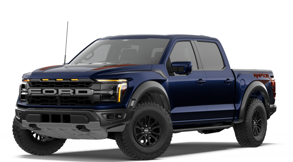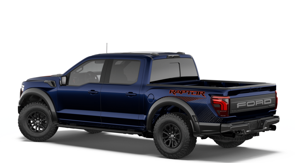 F-150 Raptor is nicely equipped with Equipment Group 801A Standard (17" Cast Aluminum Wheels, Electronic Locking with 4.10 Axle Ratio, Leather Trimmed Seats, Radio: B&O Unleashed Sound System by Bang & Olufsen, and SYNC 4 with Enhanced Voice Recognition), Ford Connectivity Package (1-Year Included), Internet access capable: 5G Modem - Ford Connectivity Package, 4WD, 14 Speakers, 4-Wheel Disc Brakes, ABS brakes, Adjustable pedals, Air Conditioning, Alloy wheels, AM/FM radio: SiriusXM with 360L, Auto High-beam Headlights, Auto tilt-away steering wheel, Auto-dimming door mirrors, Auto-dimming Rear-View mirror, Automatic temperature control, Brake assist, Bumpers: body-color, Compass, Delay-off headlights, Driver door bin, Driver vanity mirror, Driver's Side SecuriCode Keyless-Entry Keypad, Dual front impact airbags, Dual front side impact airbags, Electronic Stability Control, Emergency communication system: SYNC 4 911 Assist, First Aid Kit with Ford Logo, Front anti-roll bar, Front Bucket Seats, Front Center Armrest, Front dual zone A/C, Front fog lights, Front reading lights, Front wheel independent suspension, Fully automatic headlights, Garage door transmitter, Heated door mirrors, Heated front seats, Heated rear seats, Heated steering wheel, Illuminated entry, Lane Departure Warning System, Leather steering wheel, Low tire pressure warning, Memory seat, Navigation system: Connected Navigation, Occupant sensing airbag, Outside temperature display, Overhead airbag, Overhead console, Panic alarm, Passenger door bin, Passenger vanity mirror, Pedal memory, Power door mirrors, Power driver seat, Power passenger seat, Power steering, Power windows, Radio data system, Rain sensing wipers, Rear reading lights, Rear step bumper, Rear window defroster, Remote keyless entry, Security system, Speed control, Speed-sensing steering, Split folding rear seat, Steering wheel memory, Steering wheel mounted audio controls, Tachometer, Telescoping steering wheel, Tilt steering wheel, Traction control, Trip computer, Turn signal indicator mirrors, Twin Panel Moonroof, Variably intermittent wipers, and Ventilated front seats.