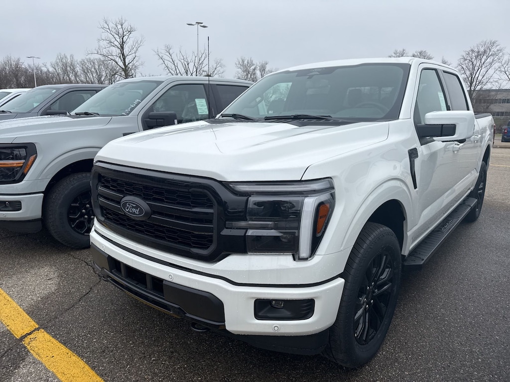 F-150 Lariat is nicely equipped with Bed Utility Package (4 Pickup Box Tie-Down Plates, Bed Storage Boxes, LED Box Lighting, and Tailgate Step with Work Surface), Equipment Group 502A High (2nd Row Heated Seats, ActiveX Trimmed Bucket Seats, Ambient Lighting - Ice Blue Color Only, Head-Up Display, Illuminated Driver and Passenger Visors, Power-Adjustable Pedals with Memory, Power-Sliding Rear Window, Radio: B&O Unleashed Sound System by Bang & Olufsen, and Wheels: 20" Chrome-Like PVD), Ford Connectivity Package (1-Year Included), Internet access capable: 5G Modem - Ford Connectivity Package, Lariat Black Appearance Package (Black Exterior Badging, Black Grille, Black Taillamp Bezels, Body-Color Front and Rear Bumpers, Dark Interior Appliques, and Gray Box Side Decal), Mobile Office Package (Console Worksurface, Partitioned Lockable Rear Storage, and Wireless Charging), Tow/Haul Package (Integrated Trailer Brake Controller), 4WD, 4-Wheel Disc Brakes, 8 Speakers, ABS brakes, Air Conditioning, Alloy wheels, AM/FM radio: SiriusXM with 360L, Auto High-beam Headlights, Auto-dimming door mirrors, Auto-dimming Rear-View mirror, Automatic temperature control, Brake assist, Bumpers: chrome, Chrome wheels, Compass, Delay-off headlights, Driver door bin, Driver vanity mirror, Driver's Side SecuriCode Keyless-Entry Keypad, Dual front impact airbags, Dual front side impact airbags, Electronic Stability Control, Emergency communication system: SYNC 4 911 Assist, Front anti-roll bar, Front Bucket Seats, Front Center Armrest, Front dual zone A/C, Front fog lights, Front reading lights, Front wheel independent suspension, Fully automatic headlights, Garage door transmitter, Heated door mirrors, Heated front seats, Heated steering wheel, Illuminated entry, Low tire pressure warning, Memory seat, Navigation system: Connected Navigation, Occupant sensing airbag, Outside temperature display, Overhead airbag, Overhead console, Panic alarm, Passenger door bin, Passenger vanity mirror, Power door mirrors, Power driver seat, Power passenger seat, Power steering, Power windows, Radio data system, Radio: B&O Sound System by Bang and Olufsen, Rain sensing wipers, Rear reading lights, Rear seat center armrest, Rear step bumper, Rear window defroster, Remote keyless entry, Security system, Speed control, Split folding rear seat, Steering wheel mounted audio controls, SYNC 4 with Enhanced Voice Recognition, Tachometer, Telescoping steering wheel, Tilt steering wheel, Traction control, Trip computer, Turn signal indicator mirrors, Twin Panel Moonroof, Variably intermittent wipers, Ventilated front seats, and Wheels: 18" Chrome-Like PVD. See dealer for details. Price may include Ford Employee discount. Price does not include licensing costs, registration fees, taxes and dealer doc fee of $280, which are to be paid by the consumer.$2500 - Retail Customer Cash. Exp. 04/30/2026