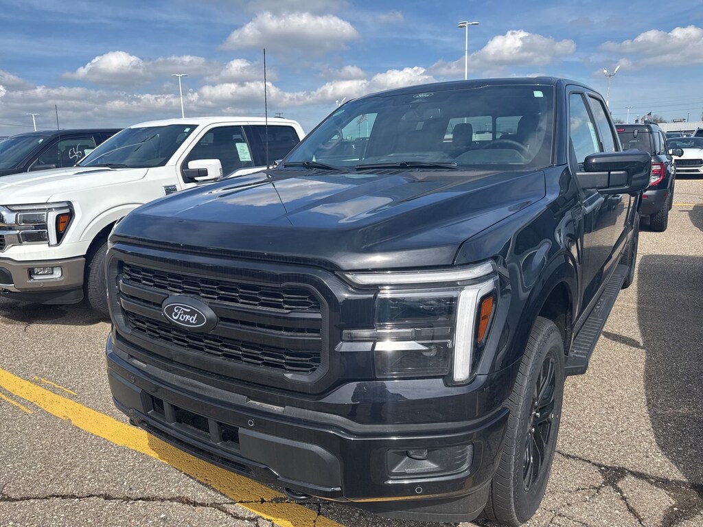 F-150 Lariat is nicely equipped with Bed Utility Package (4 Pickup Box Tie-Down Plates, Bed Storage Boxes, LED Box Lighting, and Tailgate Step with Work Surface), Equipment Group 502A High (2nd Row Heated Seats, ActiveX Trimmed Bucket Seats, Ambient Lighting - Ice Blue Color Only, Head-Up Display, Illuminated Driver and Passenger Visors, Power-Adjustable Pedals with Memory, Power-Sliding Rear Window, Radio: B&O Unleashed Sound System by Bang & Olufsen, and Wheels: 20" Chrome-Like PVD), Ford Connectivity Package (1-Year Included), Internet access capable: 5G Modem - Ford Connectivity Package, Lariat Black Appearance Package (Black Exterior Badging, Black Grille, Black Taillamp Bezels, Body-Color Front and Rear Bumpers, Dark Interior Appliques, and Gray Box Side Decal), Mobile Office Package (Console Worksurface, Partitioned Lockable Rear Storage, and Wireless Charging), Tow/Haul Package (Integrated Trailer Brake Controller), 4WD, 4-Wheel Disc Brakes, 8 Speakers, ABS brakes, Air Conditioning, Alloy wheels, AM/FM radio: SiriusXM with 360L, Auto High-beam Headlights, Auto-dimming door mirrors, Auto-dimming Rear-View mirror, Automatic temperature control, Brake assist, Bumpers: chrome, Chrome wheels, Compass, Delay-off headlights, Driver door bin, Driver vanity mirror, Driver's Side SecuriCode Keyless-Entry Keypad, Dual front impact airbags, Dual front side impact airbags, Electronic Stability Control, Emergency communication system: SYNC 4 911 Assist, Front anti-roll bar, Front Bucket Seats, Front Center Armrest, Front dual zone A/C, Front fog lights, Front reading lights, Front wheel independent suspension, Fully automatic headlights, Garage door transmitter, Heated door mirrors, Heated front seats, Heated steering wheel, Illuminated entry, Low tire pressure warning, Memory seat, Navigation system: Connected Navigation, Occupant sensing airbag, Outside temperature display, Overhead airbag, Overhead console, Panic alarm, Passenger door bin, Passenger vanity mirror, Power door mirrors, Power driver seat, Power passenger seat, Power steering, Power windows, Radio data system, Radio: B&O Sound System by Bang and Olufsen, Rain sensing wipers, Rear reading lights, Rear seat center armrest, Rear step bumper, Rear window defroster, Remote keyless entry, Security system, Speed control, Split folding rear seat, Steering wheel mounted audio controls, SYNC 4 with Enhanced Voice Recognition, Tachometer, Telescoping steering wheel, Tilt steering wheel, Traction control, Trip computer, Turn signal indicator mirrors, Twin Panel Moonroof, Variably intermittent wipers, Ventilated front seats, and Wheels: 18" Chrome-Like PVD. See dealer for details. Price may include Ford Employee discount. Price does not include licensing costs, registration fees, taxes and dealer doc fee of $280, which are to be paid by the consumer.$2500 - Retail Customer Cash. Exp. 04/30/2026